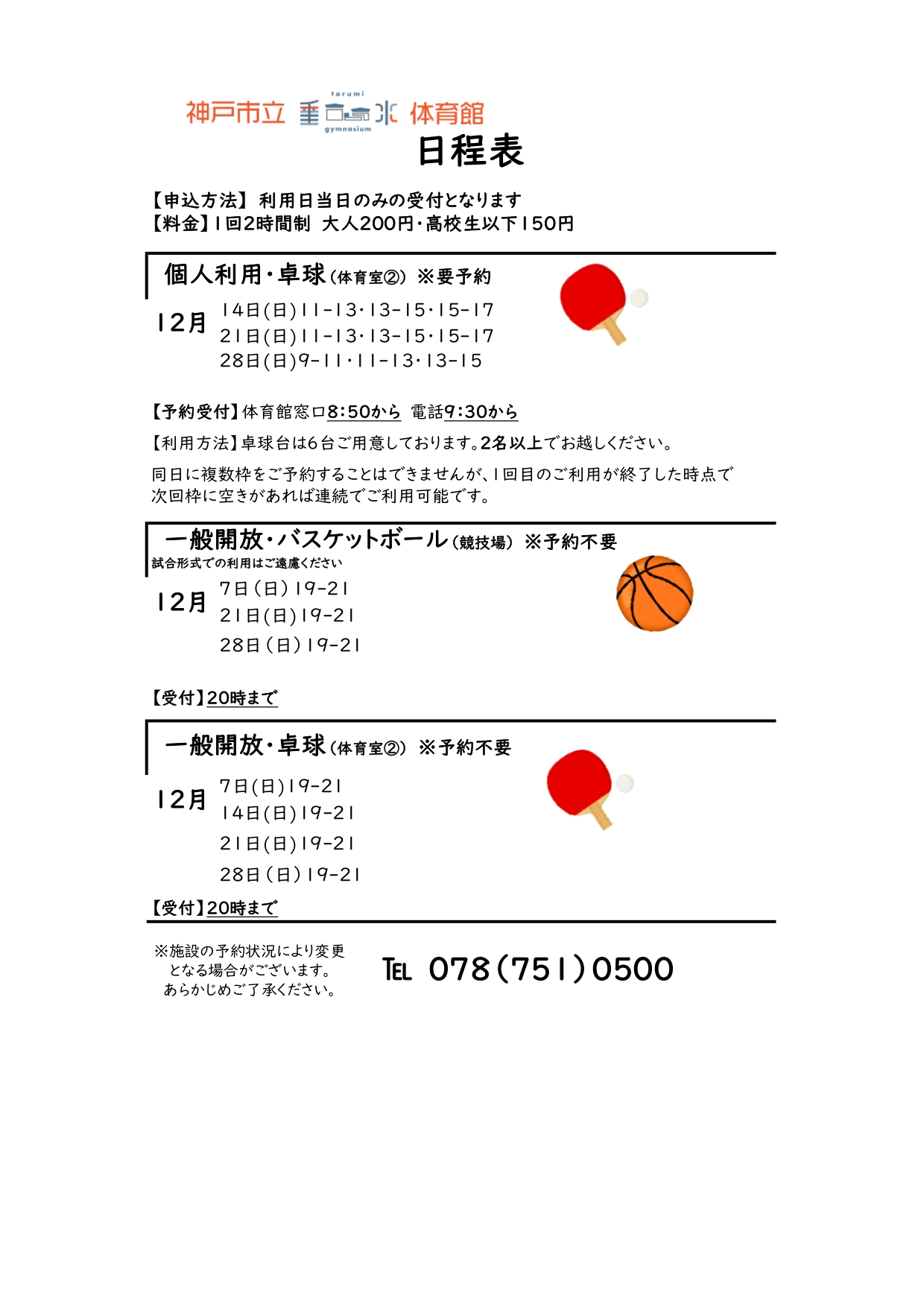 いつも垂水体育館をご利用いただきありがとうございます。